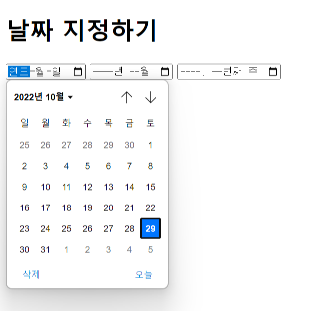5. 날짜 입력을 나타내는 date, month, week