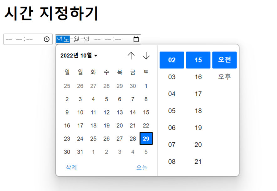 6. 시간 입력을 나타내는 time, datetime, datetime-local